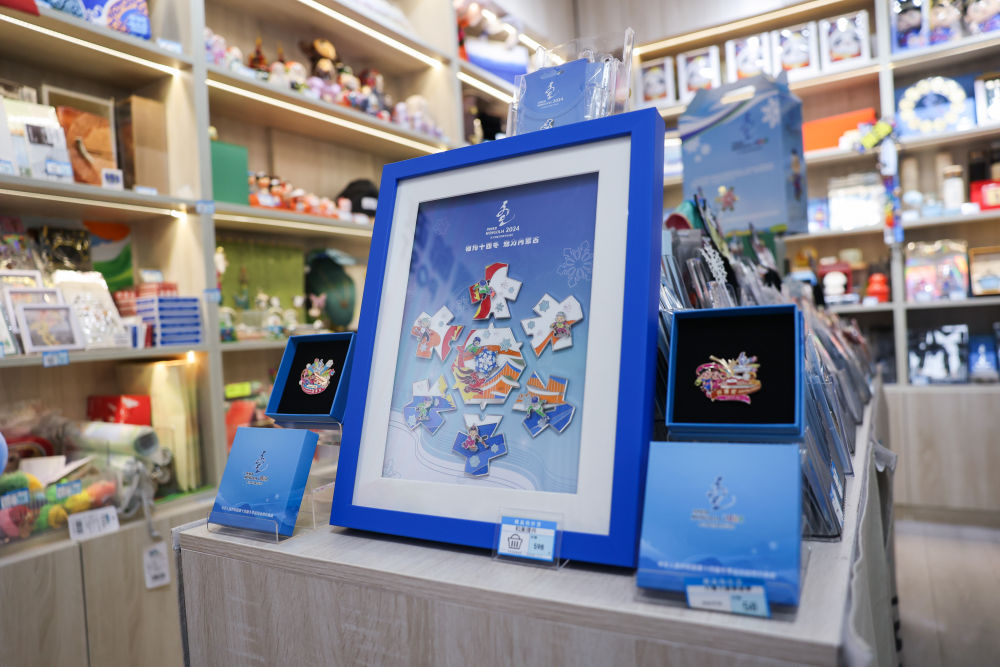 這是2024年1月10日在官方特許商品零售店內(nèi)拍攝的“十四冬”文創(chuàng)產(chǎn)品。新華社記者 王楷焱 攝