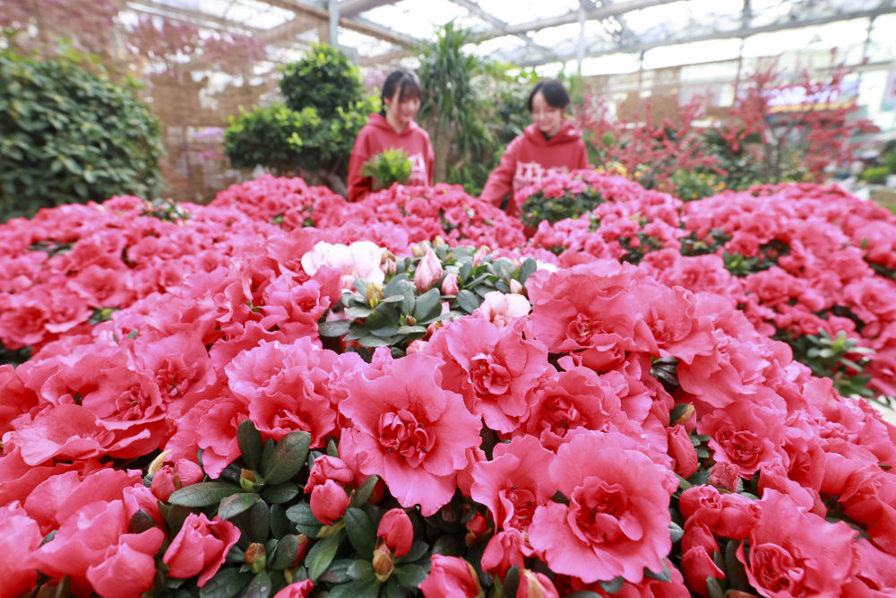 2024年2月8日,市民在河北省唐山市豐南區(qū)一處花卉市場(chǎng)選購鮮花。新華社發(fā)(李秀清 攝)