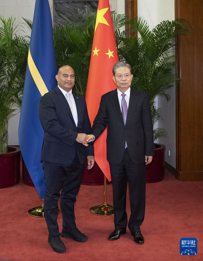 ??3月26日,全國人大常委會委員長趙樂際在北京會見瑙魯總統(tǒng)阿迪昂。新華社記者 李濤 攝