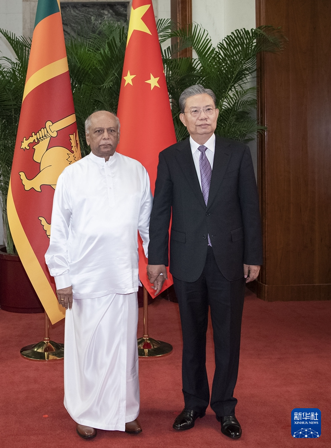 ??3月26日,全國人大常委會委員長趙樂際在北京會見斯里蘭卡總理古納瓦德納。新華社記者 李濤 攝