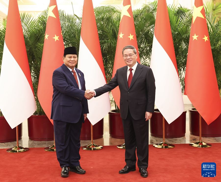 ??4月2日上午,國務(wù)院總理李強(qiáng)在北京人民大會堂會見印度尼西亞當(dāng)選總統(tǒng)普拉博沃。新華社記者 龐興雷 攝