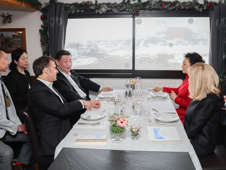 ??驛站木屋外,春雪紛飛,云海浩渺。兩國元首夫婦憑窗而坐,遠(yuǎn)眺群山,品當(dāng)?shù)靥厣牢?,論天下風(fēng)云際會(huì),在輕松愉快的氛圍中就一些重要問題進(jìn)行了戰(zhàn)略溝通。