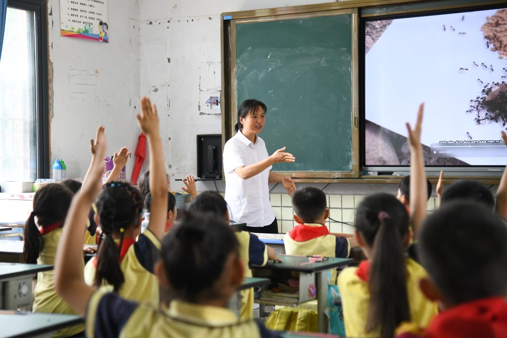 ??5月31日,學(xué)生在科學(xué)課上與老師互動。新華社記者 胥冰潔 攝
