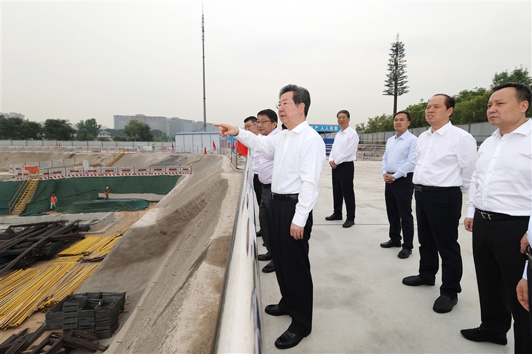 六月四日,省委書記樓陽生到國(guó)家超算互聯(lián)網(wǎng)核心節(jié)點(diǎn)工程項(xiàng)目施工現(xiàn)場(chǎng),調(diào)研工程建設(shè)進(jìn)度、算力基礎(chǔ)軟件研發(fā)等情況。 本報(bào)記者 董亮 蔡迅翔 攝