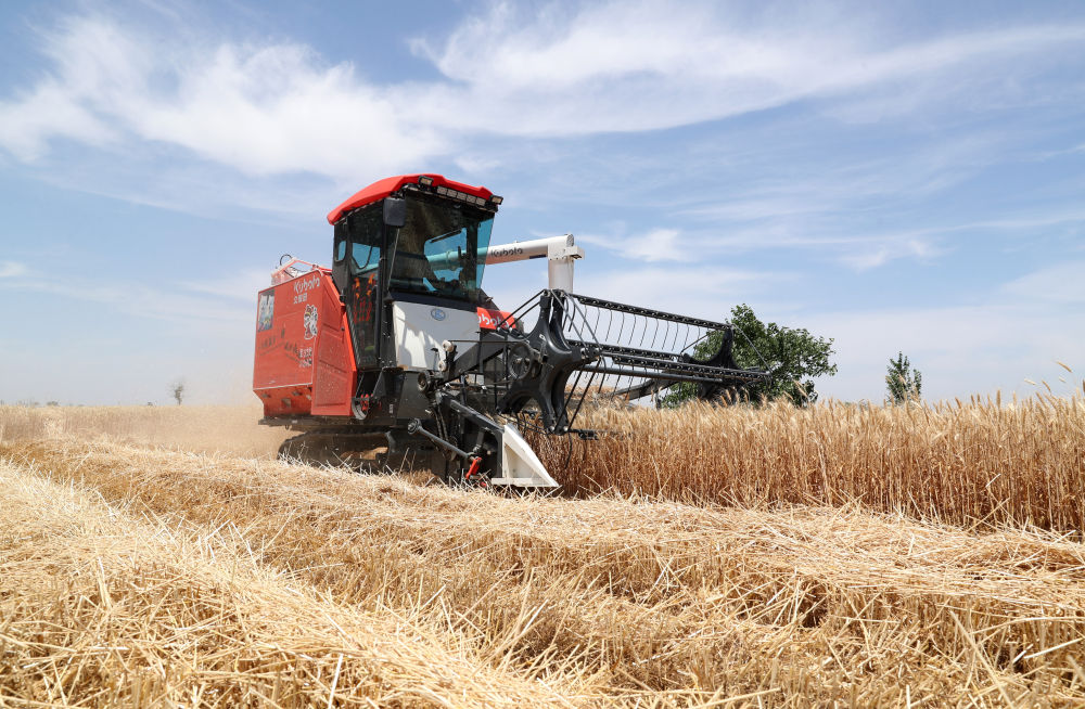 2024年5月27日,安徽省蒙城縣樂(lè)土鎮(zhèn)農(nóng)民駕駛農(nóng)機(jī)搶收小麥。新華社發(fā)(胡衛(wèi)國(guó)攝)