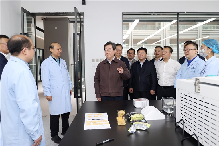 十月八日,省委書記樓陽生到漯河市調(diào)研中原食品實驗室技術(shù)創(chuàng)新、成果轉(zhuǎn)化等情況。 本報記者 董亮 蔡迅翔 攝